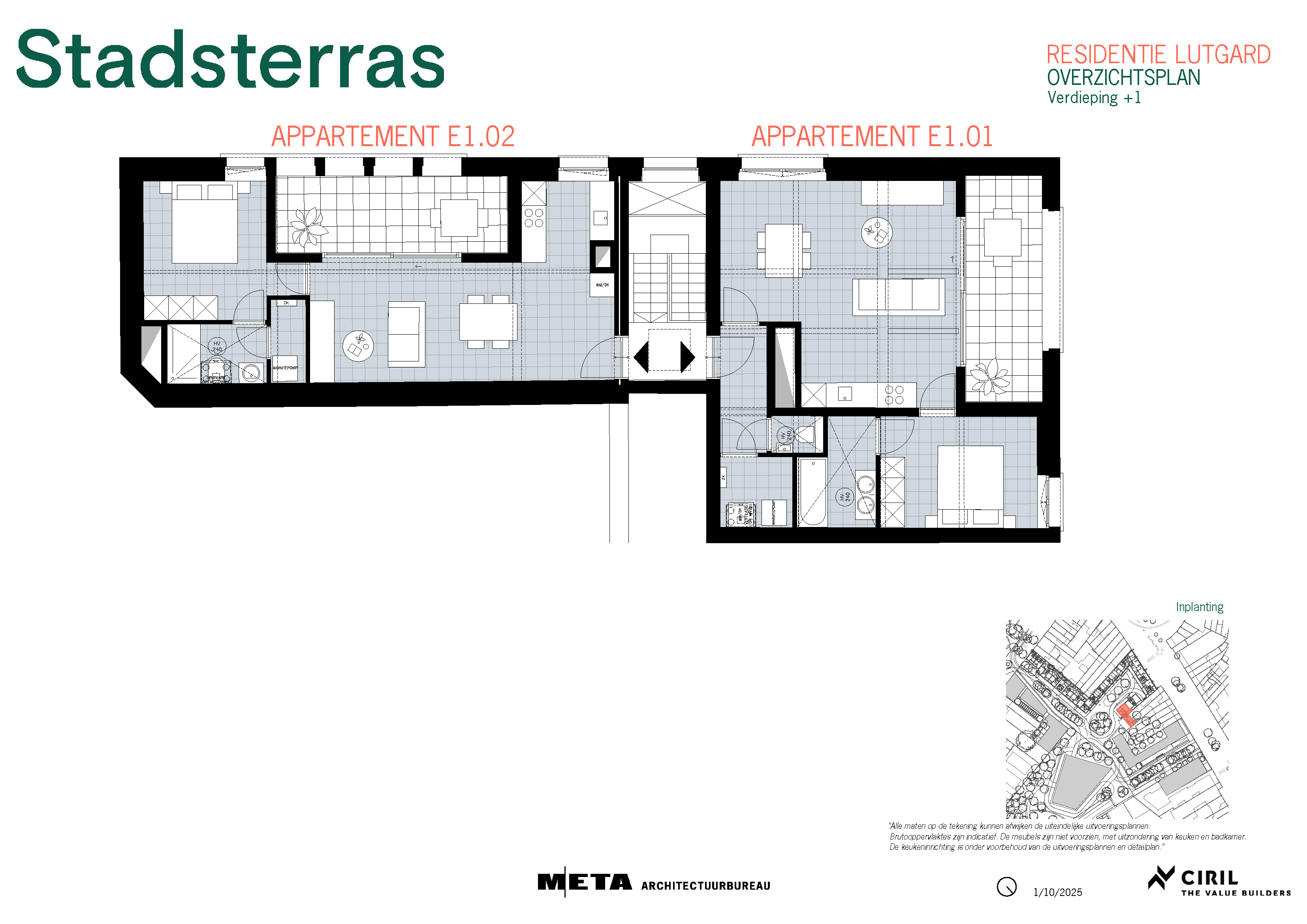Stadsterras - Residentie Lutgard E1.02 | 53.5 m² | 1 | 10.2 m² | € 241.000 |